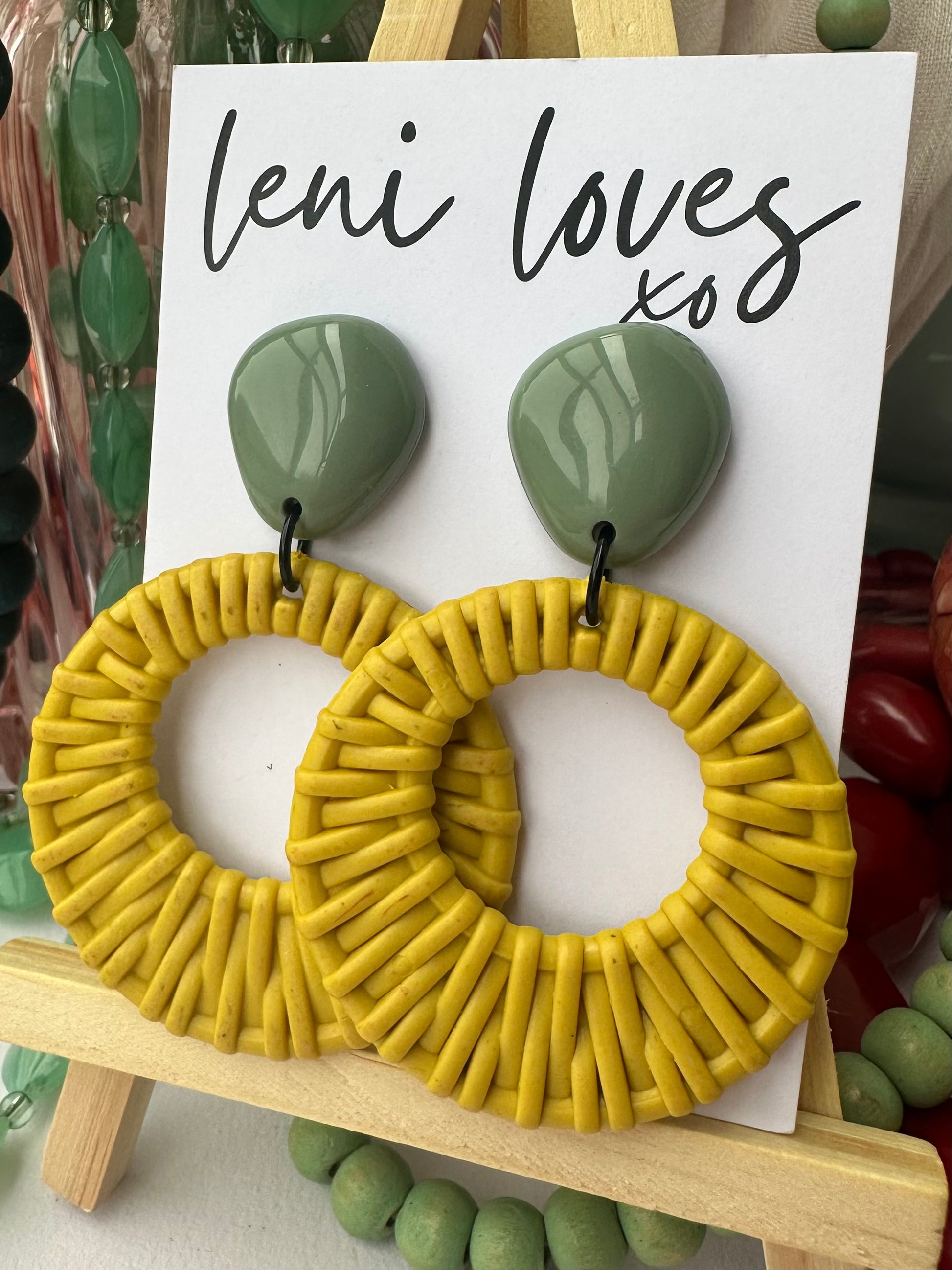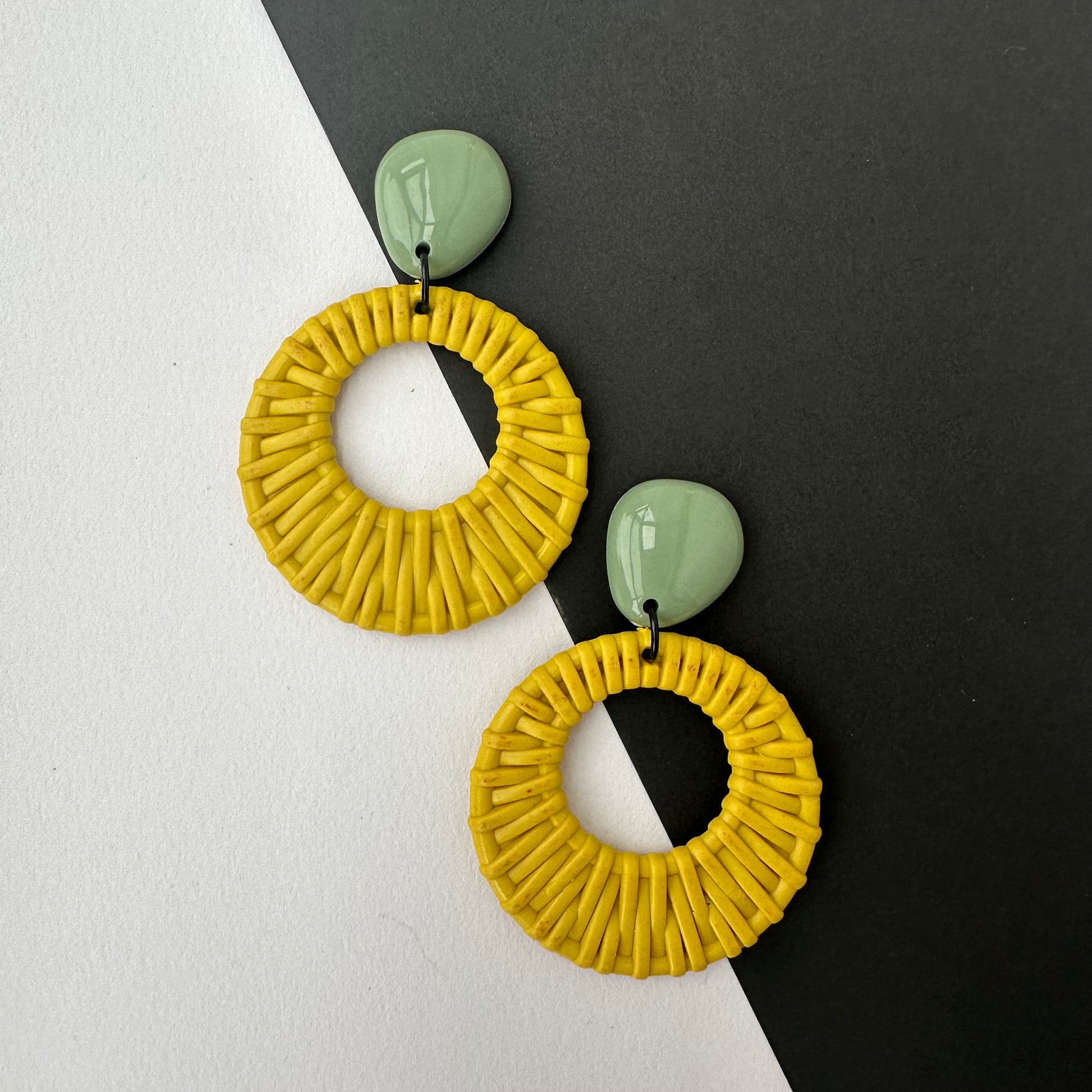 Ada Retro Rattan Dangle Earrings — Olive Sunshine