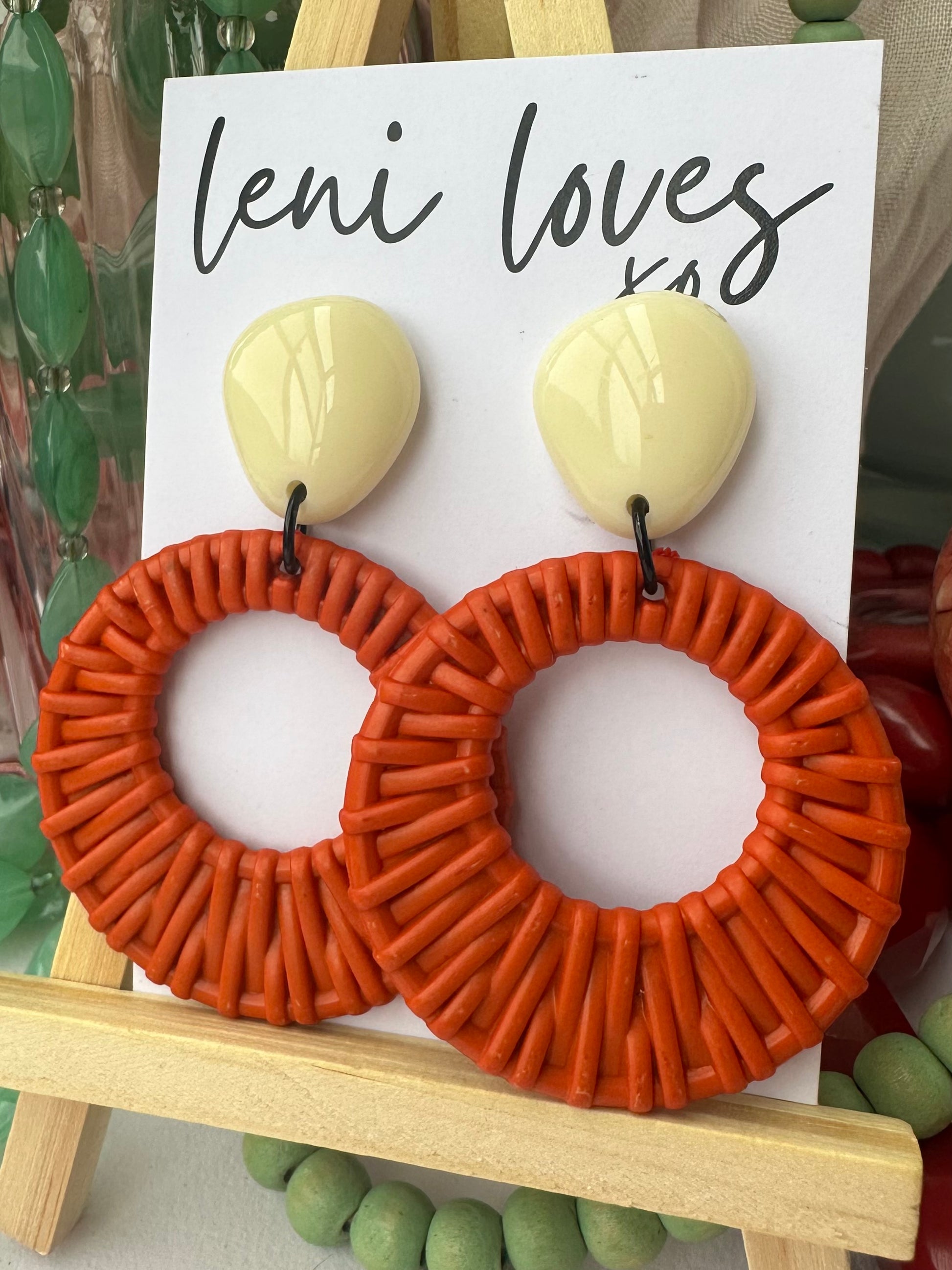Ada Retro Rattan Dangle Earrings — Ivory + Orange