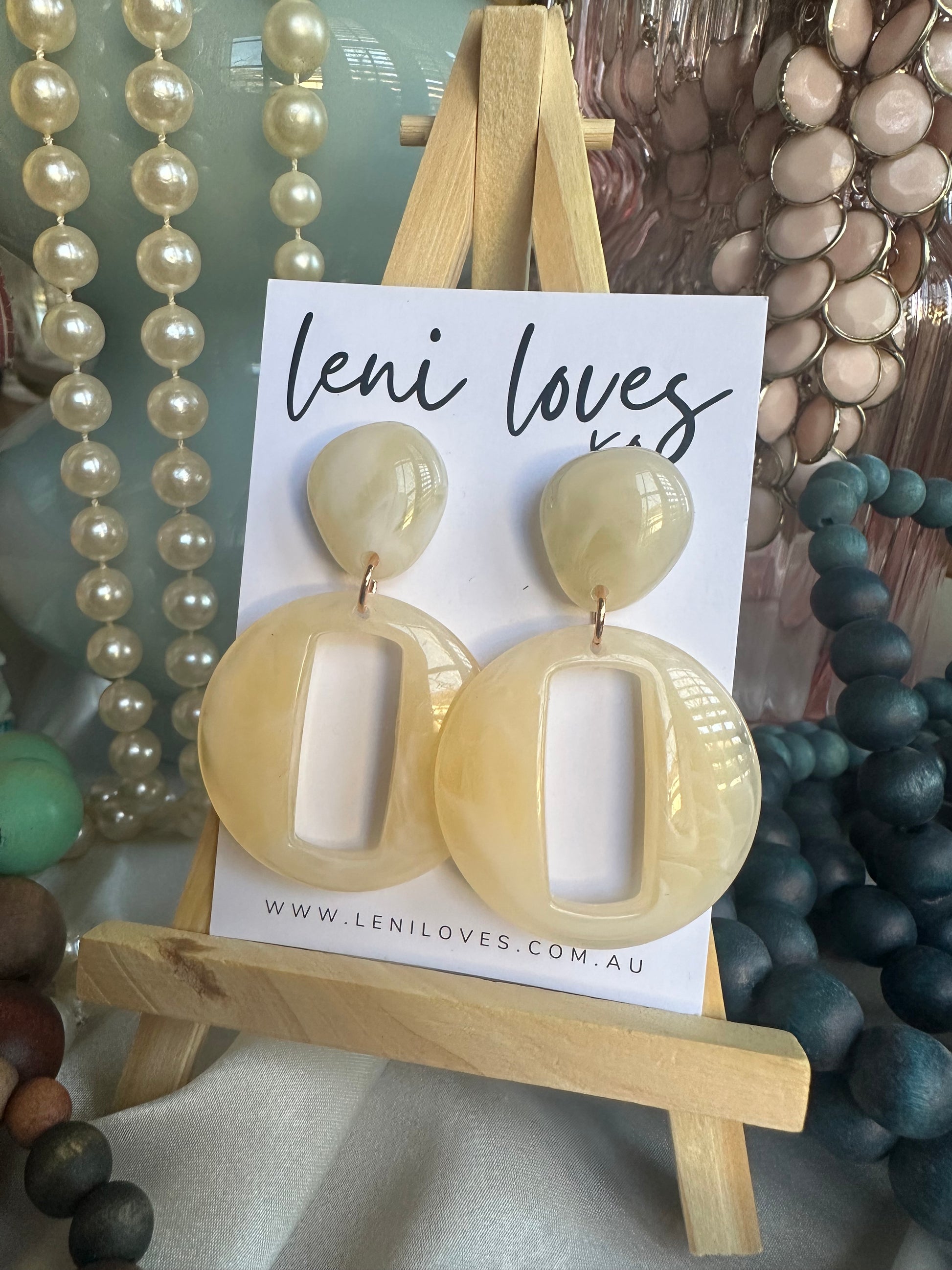 Bold, curvy, and a little bit glam — Cleo is here to make a statement. Featuring a glossy stud paired with a bold cut-out disc accent in your choice of colour, these retro-inspired dangles are designed to turn heads.