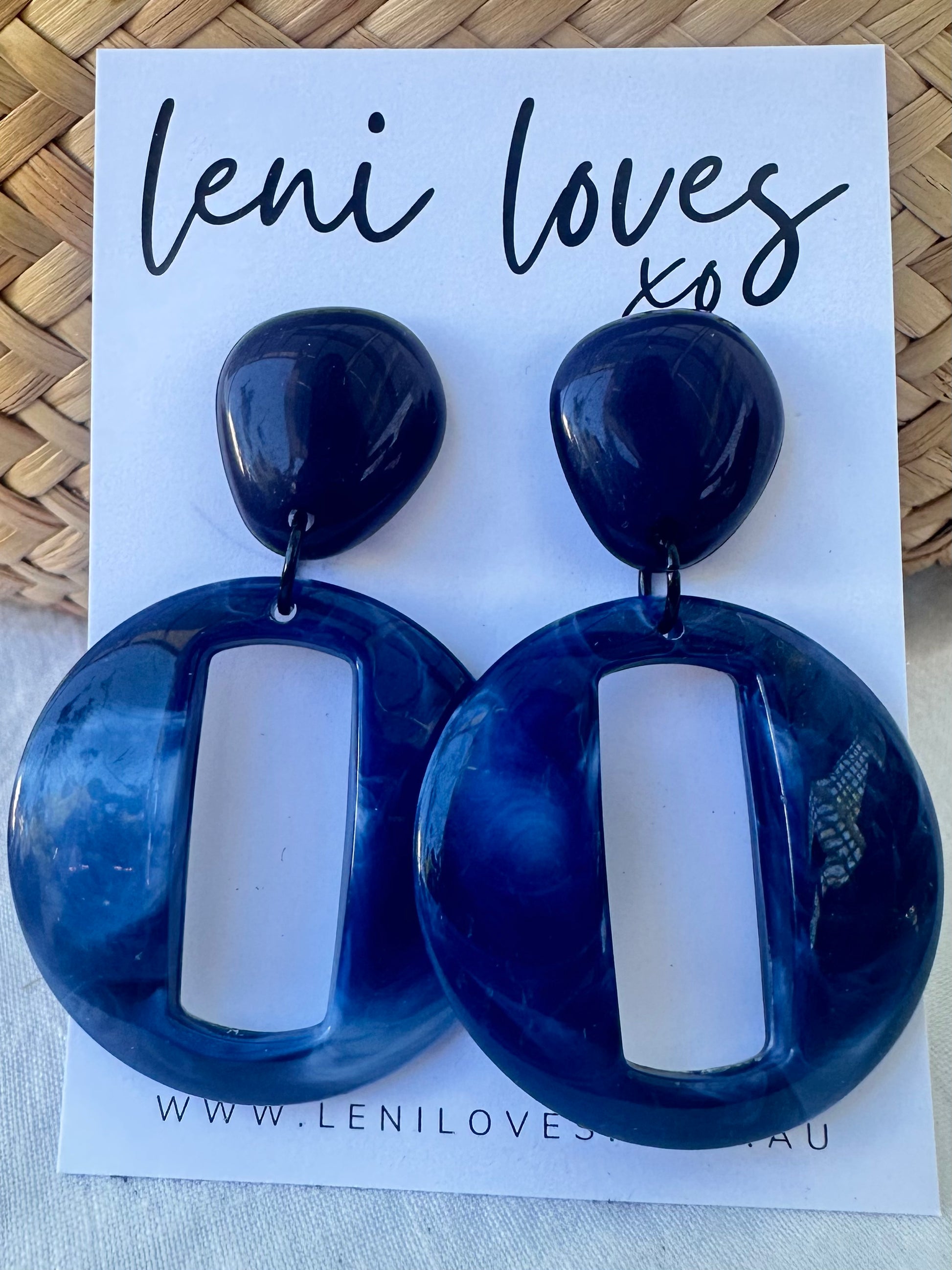 Cleo Retro Dangle Earrings — Navy